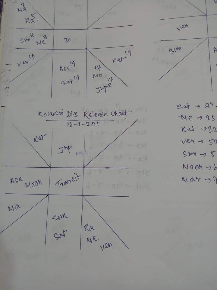 এখানে দেখা যাচ্ছে ধনুষের পূর্ণ কালসর্পযোগ আছে কিন্তু সে তার জীবনে প্রতিষ্টিত হয়েছেন ৪২ বছরের আগেই। মজার ব্যাপার একটা উনি যেদিন কোলাভেরি গানটা রিলিজ করেন সেই সময়টাও ছিল বৃহস্পতি ভঙ্গ কালসর্প যোগ। ছবিতে পাঠকগণ দেখতে পাবেন। তারমানে এখানে সম্পূর্ণ ভাবে স্পষ্ট যে ধনুষের জীবনে কালসর্পযোগ কাজ করেনি।